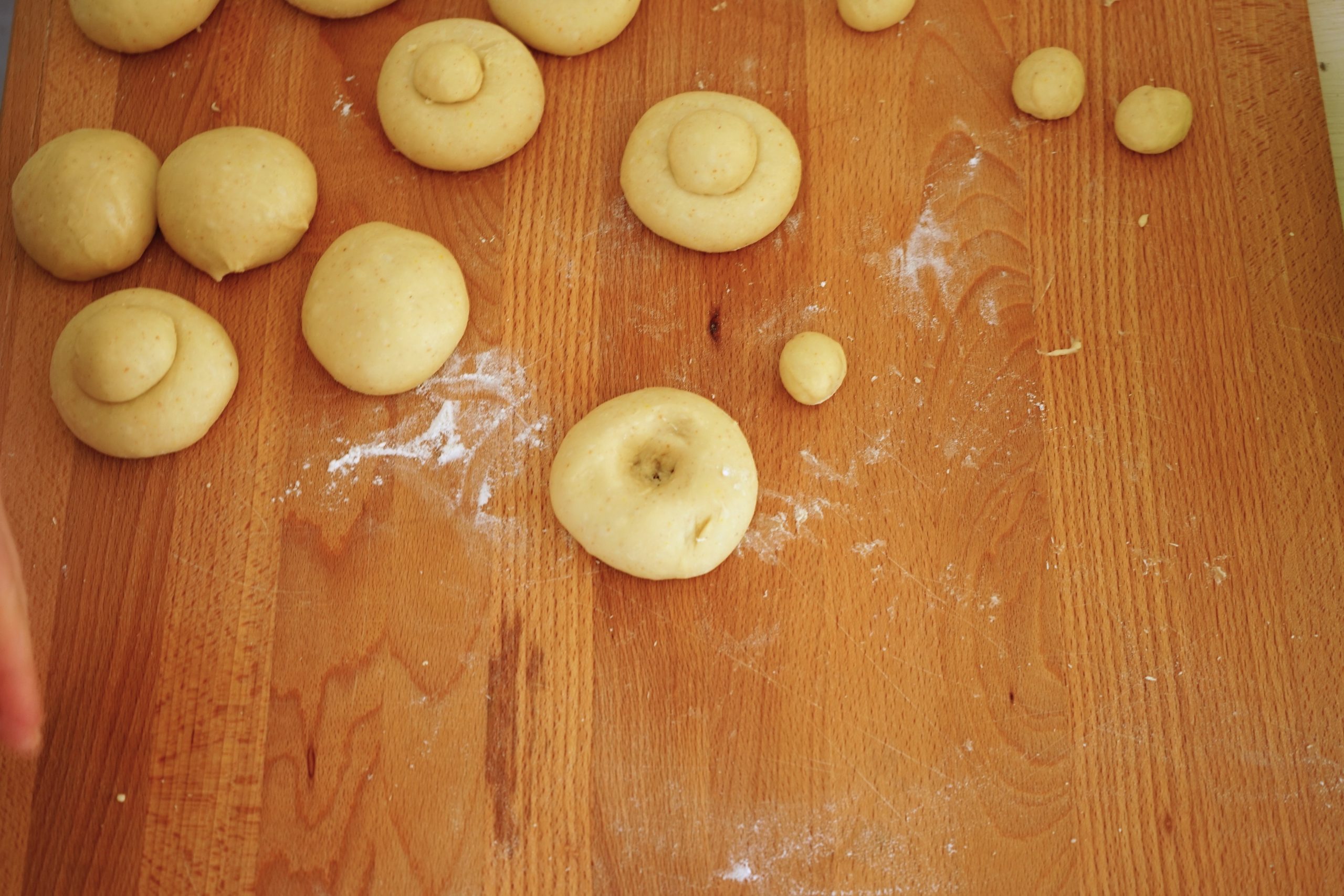 Dividi l’impasto in 10 palline da 75-80 g circa e altre 10 palline da 25 g circa.