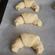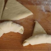 - Metti man mano su una placca da forno foderata con carta da forno, con la punta del triangolo a contatto con la teglia e tenendo le brioches un po' distanti tra loro.