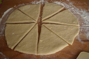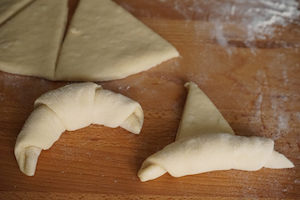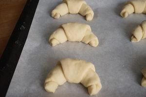Metti man mano su una placca da forno foderata con carta da forno, con la punta del triangolo a contatto con la teglia e tenendo le brioches un po' distanti tra loro (3).