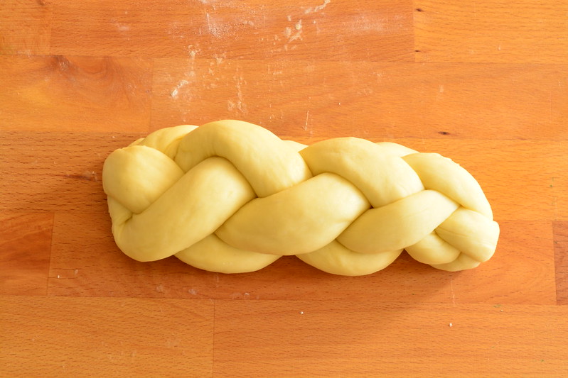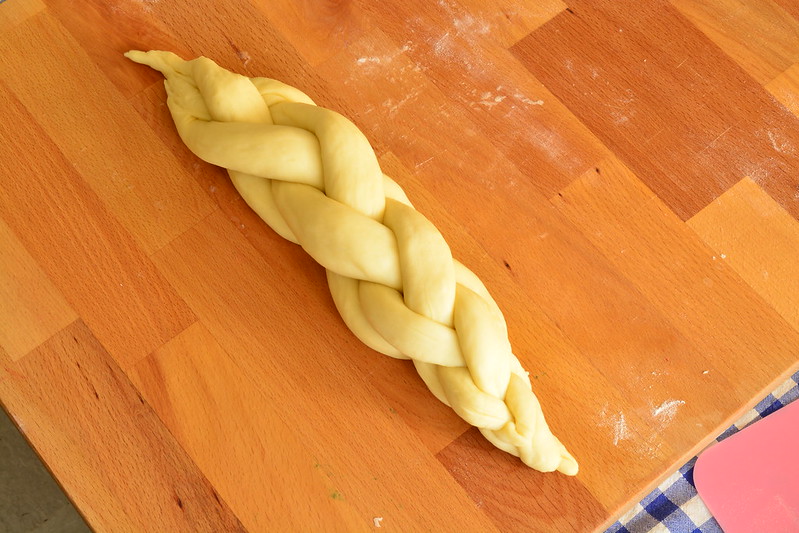 Ripeti tutto il processo per formare la seconda treccia con la metà di impasto che avevi messo da parte e mettila a lievitare con la prima.