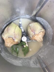 Si tratta di una crema semplice semplice, oltretutto molto leggera perché i carciofi sono cotti col Varoma. Poi la cremina non è a base di panna o altri formaggi grassi, bensì semplice acqua di cottura dei carciofi e un pochino di farina.