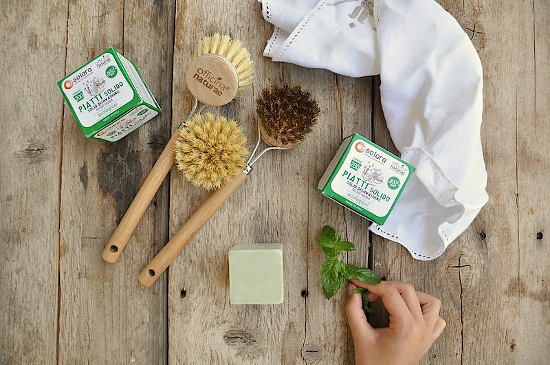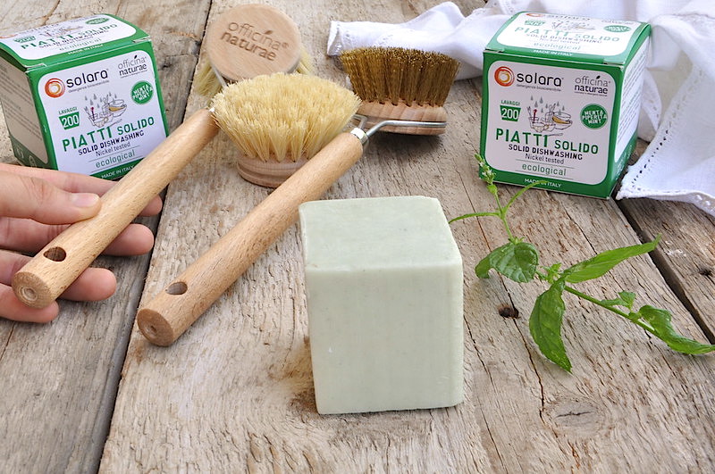 Il sapone per piatti ecologico solido di Officina Naturae 100% bio e le spazzole