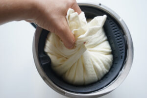 - Rivesti il cestello del Bimby con un tovagliolo bagnato e strizzato.