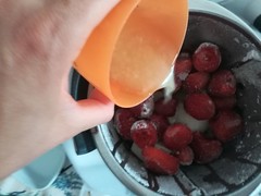 Davvero squisito! Ho messo mezza dose di zucchero, era piu che sufficiente. Ho dovuto frullare un po piu a lungo ma e riuscito perfettamente! Grazie per la ricetta!